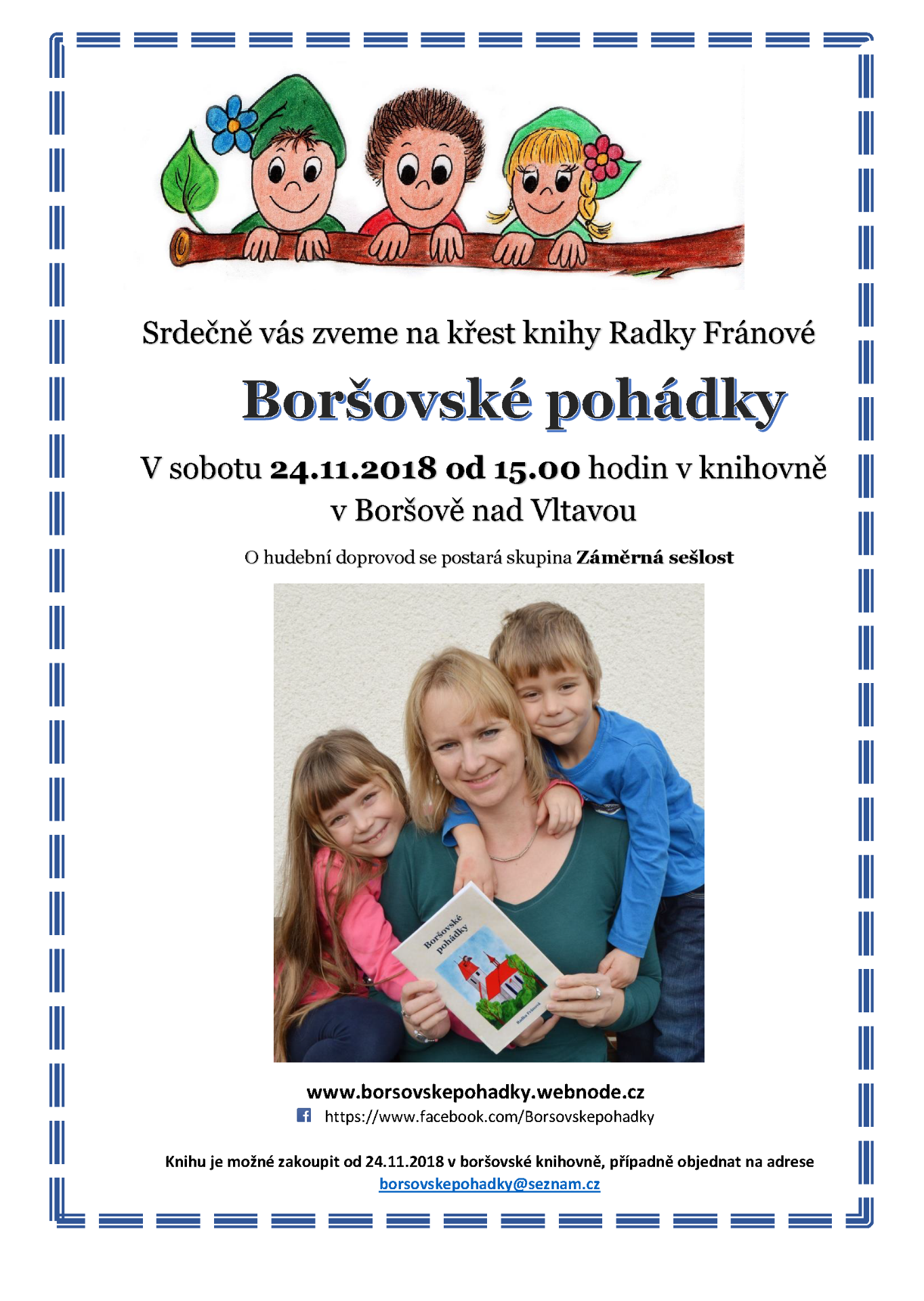 Do boršovské knihovny zavítala koncem září milá návštěva - pan Filip Černý, redaktor publicistiky Českého rozhlasu České Budějovice. Vznikl tak rozhovor o Boršovských pohádkách, který si můžete poslechnout v pořadu O knihách s knihovnicí. Kdo nestihl přímé vysílání, lze dohledat v archivu - začínáme v 5:25 minutě :-)